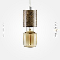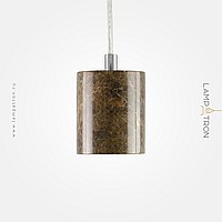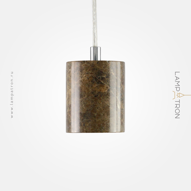 A stylish cylindrical cartridge made of brown marble. Complex: cartridge, wire, ceiling cap, set of fasteners.