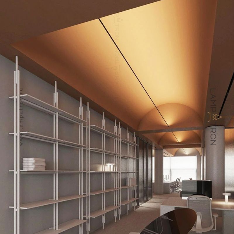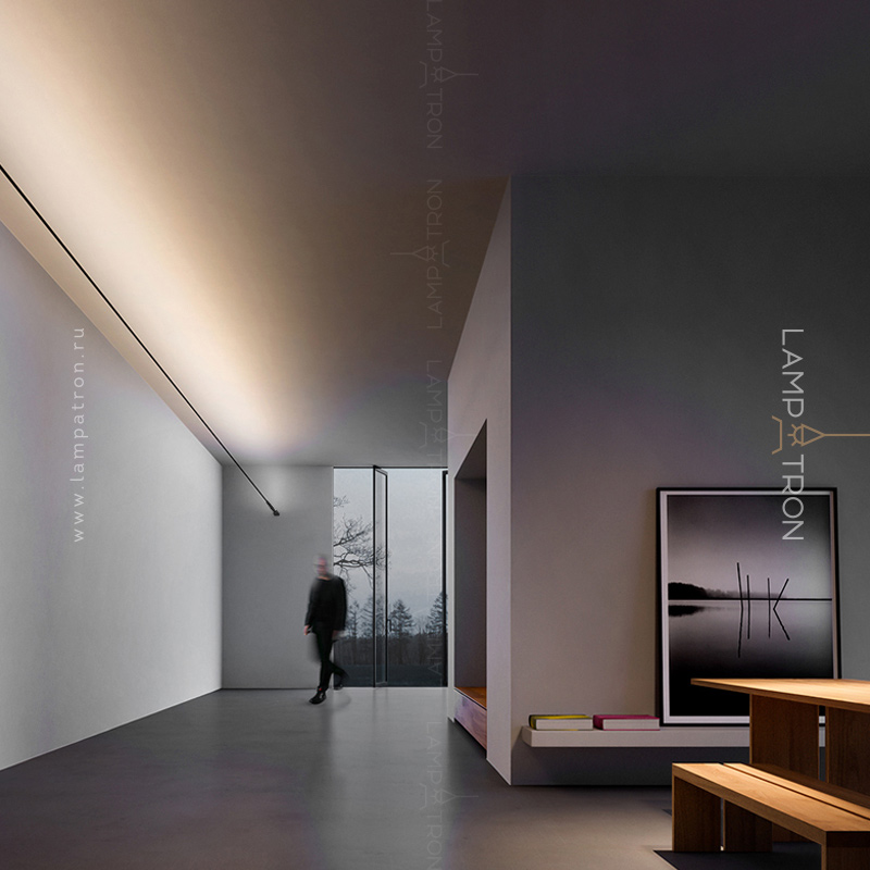 The system is a tension strip line with a built-in LED strip that is stretched between two fasteners.