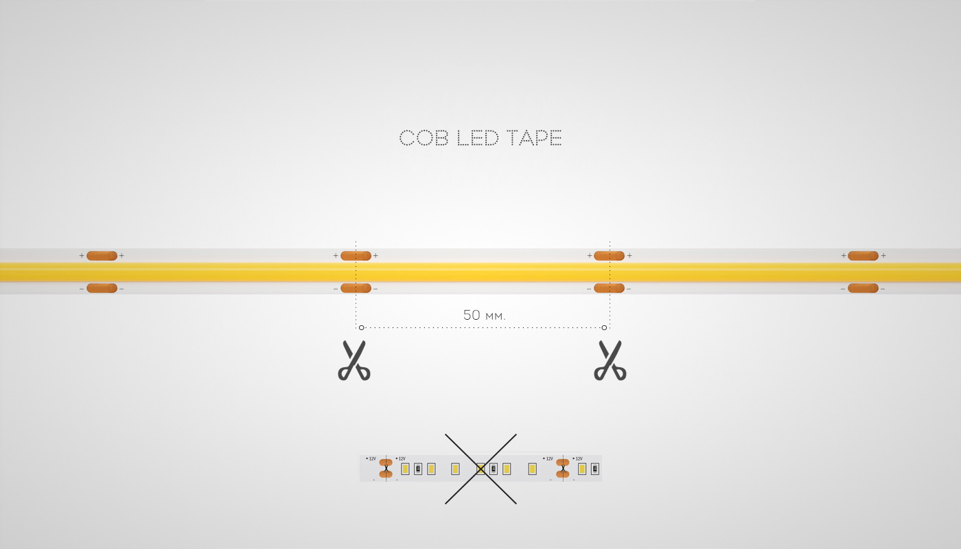 The system uses a tape with a diode made using COB (chip on board) technology. This allows you to create an even light flux along the entire length of the tape. The use of COB technology is a distinctive advantage over analogues on the market.